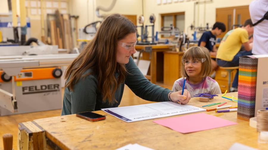 In fall 2023, the project’s first semester, Dietsche’s class invited first-graders from St. Paul’s to collaborate on the same project, with an end goal of building mid- to high-fidelity prototypes of the imagined toys using ash tree lumber provided by the City of Menomonie’s Urban Forestry Board.