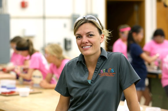 Top: Kari Berthiaume, a 2002 alumna and engineering manager with Andersen Corporation, was one of 23 female engineers who worked as instructors at the annual STEPS for Girls program at UW-Stout.