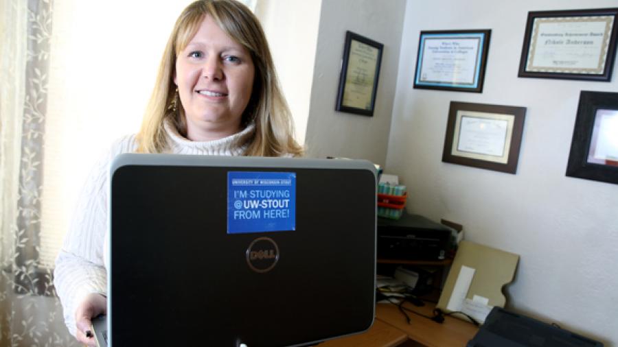 Top: Nikole Anderson recently was a UW-Stout online student from La Crosse. Best Colleges has named UW-Stout the best online college in Wisconsin.
