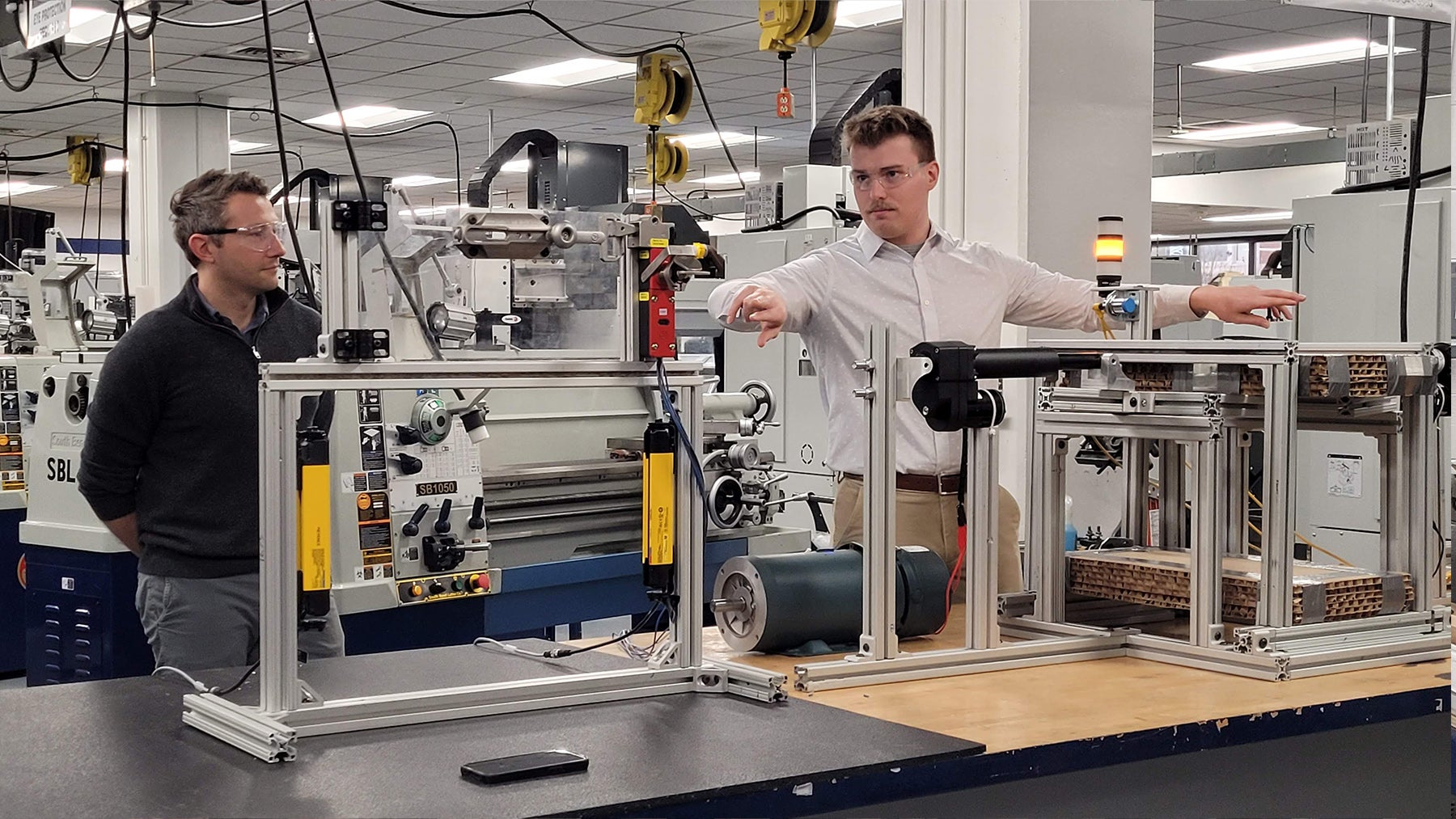 During the Manufacturing Engineering & Mechanical Engineering Showcase on Dec. 16, they presented a scaled, controls-focused prototype to UW-Stout faculty and supporters, as well as Ashley representatives, including Manufacturing Engineer Erik Kramer, the team’s project manager.