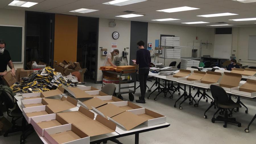 When the kits were done, about 220 students picked them up, and the remainder were mailed.