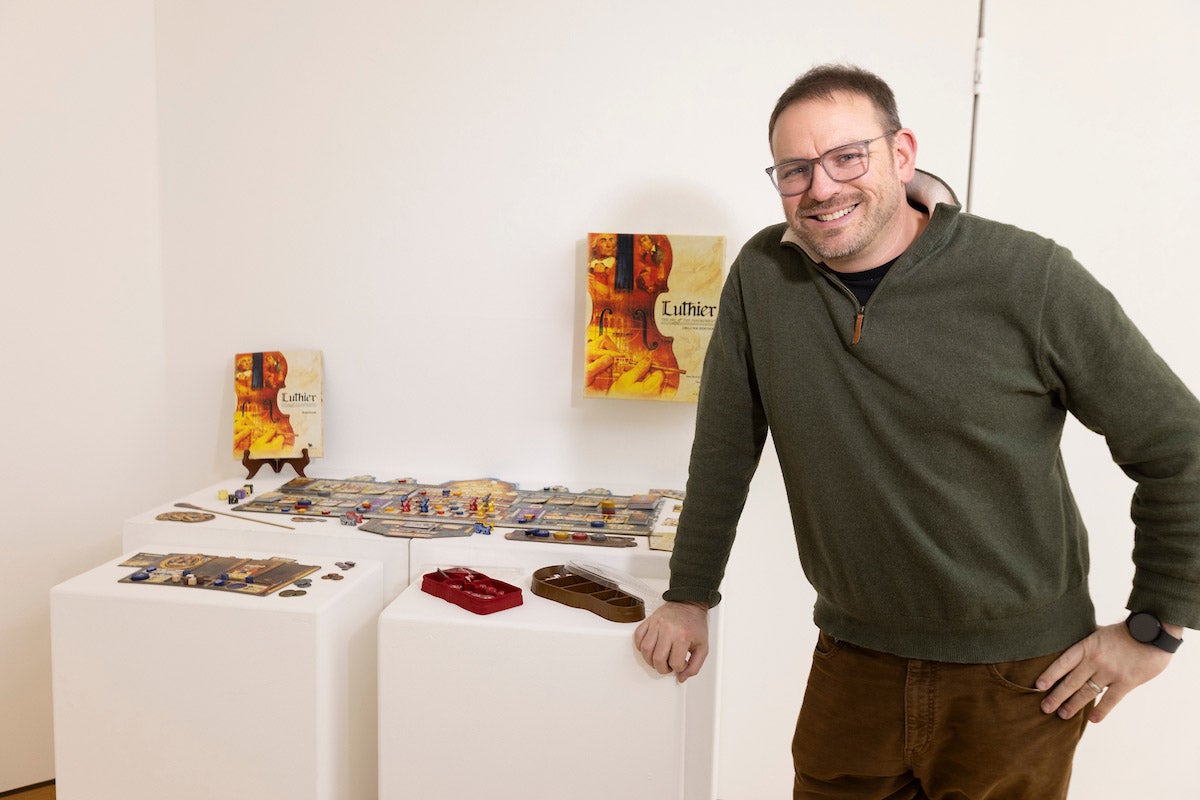 Just like his board game collection, Beck’s board game output didn’t stop at one. He co-designed a second game, Luthier, in which players take the roles of 18th-century instrument makers during the height of the classical music era. This meticulously detailed game hit the market in 2025 after another successful Kickstarter, which raised $790,000. Two more Paverson Games titles by different designers are now in the pipeline: Class of ’89, which focuses on creating a high school yearbook (with artwork by Evensen), and Ringyō, a forestry game set in feudal Japan (designed by former UW-Stout Lecturer Charlie McCarron).