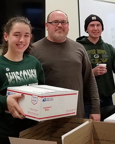 Jeffrey Hughes, center, helps at a UW-Stout Veterans Club event.