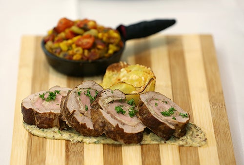 The team cooked braised pork tenderloin with wild mushroom sauce and mashed potatoes.