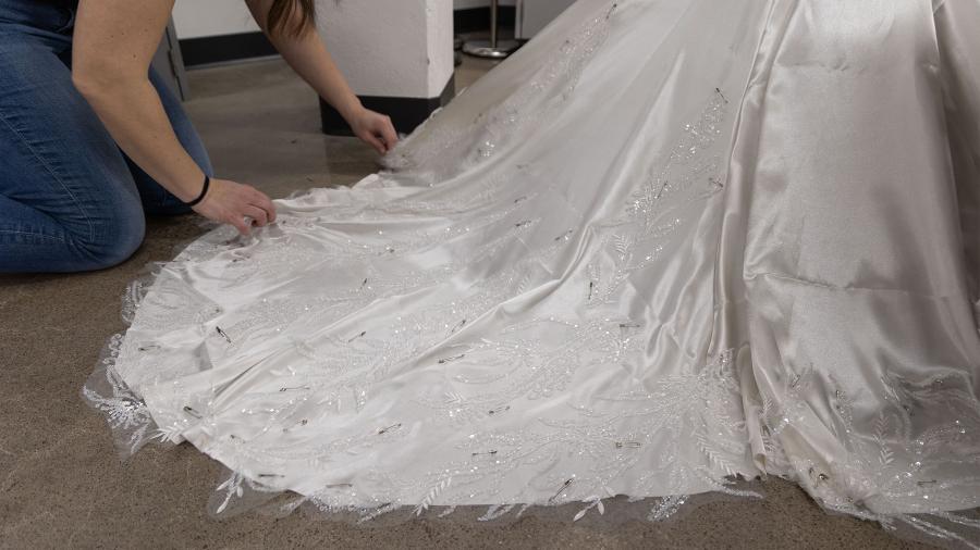 Emerson, who also has a degree in industrial design from UW-Stout, learned much of her hand-sewing techniques while interning last summer at Beauty By Design, in Minneapolis. She put it all to the test in her bridalwear collection.
