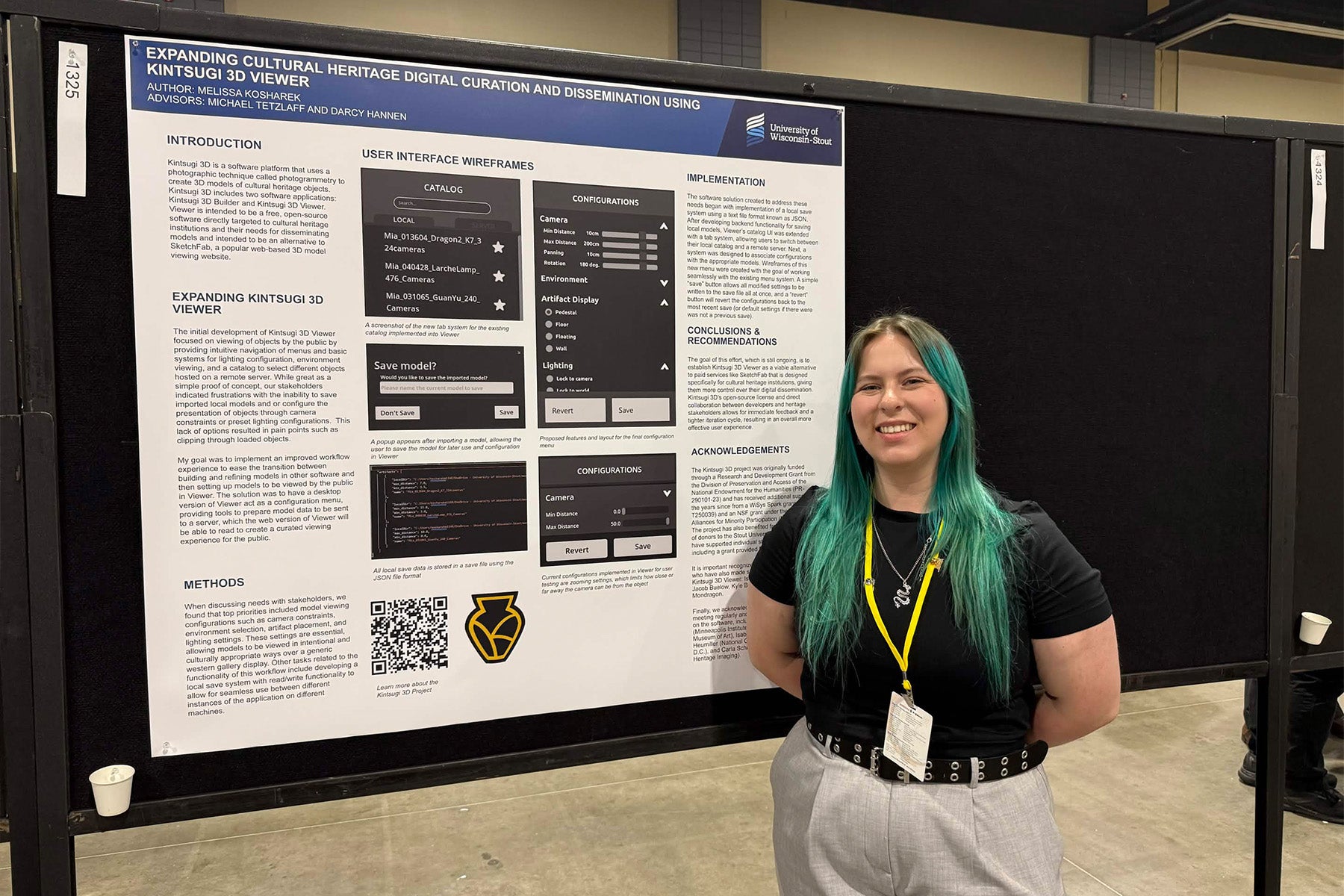 With the world becoming increasingly digital, UW-Stout computer science senior Melissa Koskarek’s Kintsugi 3D Viewer software is helping to make that happen. Through Kintsugi 3D, a creation of computer science Assistant Professor Michael Tetzlaff, Kosharek and a team of faculty and fellow student researchers are producing software that allows museums to preserve their collections by creating true-to-life, interactive 3D digital models to exhibit for viewers around the globe.