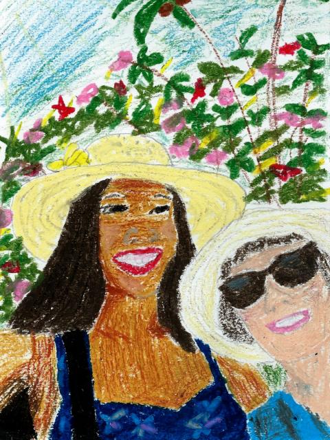 A pastel of Karen Loeb and her daughter, painted by her daughter. / Karen Loeb