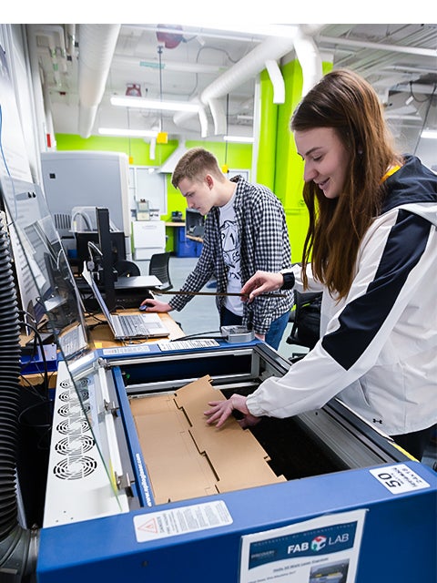 One of nearly 300 lab spaces at UW-Stout, our Fab Lab offers innovators, creatives, and makers access to the tools that bring ideas to life. Training on laser cutters, 3D printers, and other leading-edge digital fabrication tools, empowers students and partners to design, prototype, and build nearly anything they envision. This idea-to-action environment is a perfect showcase of the hands-on opportunities that distinguish UW-Stout's impact-focused polytechnic education.